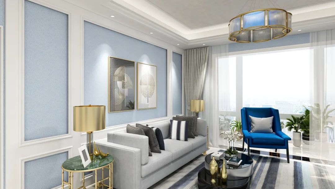 就是色相环中,任何直径两端的相对之色都互为互补色。就比如,橙色的互补色就是蓝色,绿色的互补色就是红色。将基础色、主配色的互补色作为空间的强调色,整个空间都会变得更加灵动、鲜活、富有生气,就不容易有莫名的疲惫感了。