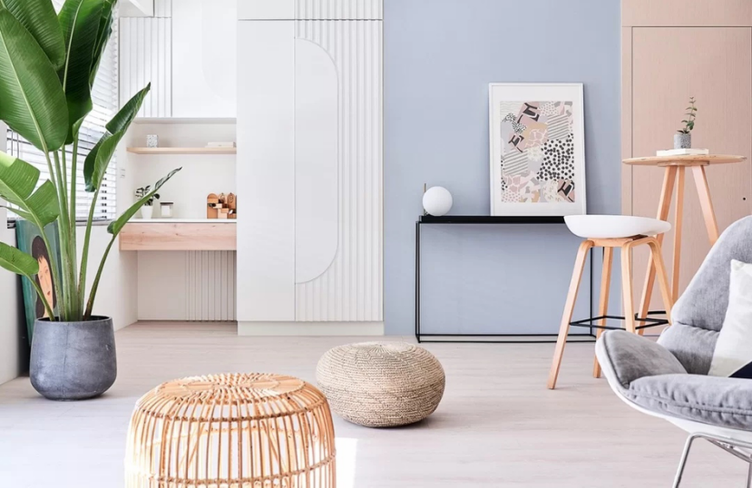 糖系的墙面、地板、基础家具其实都可以很平庸